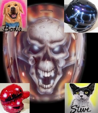 RS DEZINES specializes in custom airbrush painting of HOCKEY GOALIE MASKS, TSHIRTS, MOTORCYCLE HELMETS, BATTING HELMETS,  PET PORTRAITS and ANYTHING you can paint on! Get your project painted with one on one attention from airbrush artist Rob Schlitter!